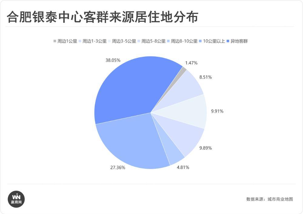 数据进一步揭示了其客源的广泛性:同城10公里以上的客群占比达27.36%,而异地客群占比更是高达38.05%,两者合计超过65%。这意味着,项目超过六成的客流量来自合肥主城外围及安徽省内其他城市,有力印证了其影响力已辐射全市乃至全省。