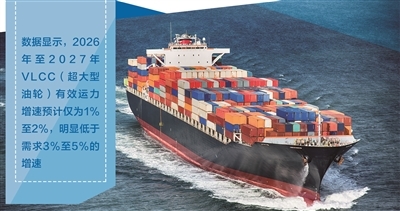 从数据来看,供给紧张并非短期现象。克拉克森发布的数据显示,截至2025年底,在航VLCC中,有近20%船龄超过20年,而VLCC手持订单占船队比重仅17.2%。与此同时,2026年至2027年VLCC有效运力增速预计仅为1%至2%,明显低于需求3%至5%的增速。