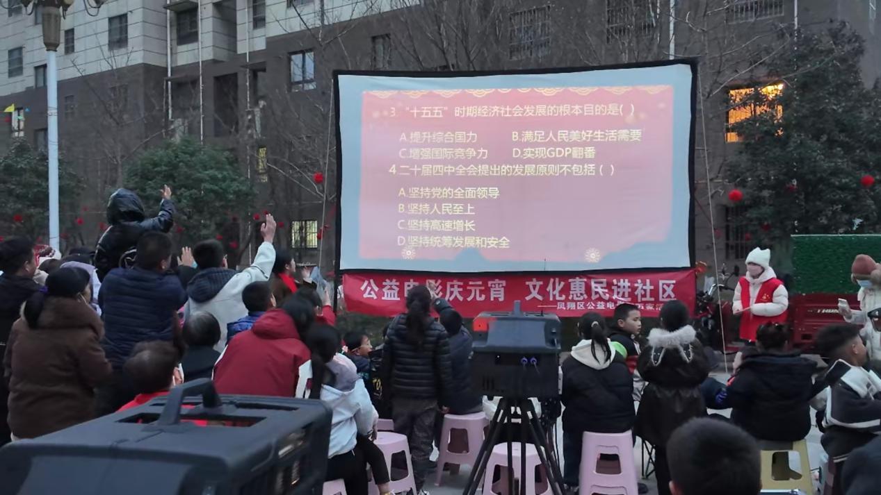 除此之外,宝鸡农村数字电影院线凤翔区服务站还把理论宣传和民俗乐趣结合起来,在恒源新城广场的元宵猜灯谜电影惠民活动上,近千条灯谜藏着小惊喜,悄悄融入了党的二十届四中全会精神、移风易俗、文明新风等内容。大家猜灯谜、品年味、看电影,在轻松惬意的氛围里,不知不觉就学到了理论知识,既玩得开心,又收获满满,进一步凝聚起大家一起奋进的共识和力量。