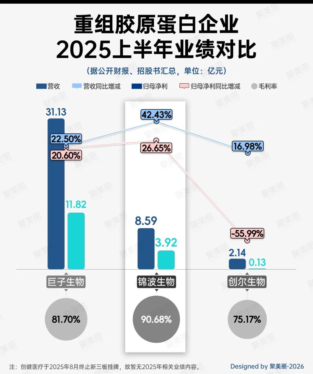 而这并非行业个例,创尔生物2025年度业绩也显著下滑,创健医疗则已从新三板正式退市。几大该赛道的企业接连承压,是否意味着重组胶原蛋白赛道正进入阶段性调整,行业或将从此前的野蛮扩张转向理性竞争。
