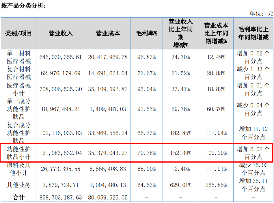 对此,锦波生物表示,其营收增长主要得益于加大市场推广力度,强化品牌建设,推出新的三类医疗器械产品,以及加强功能性护肤品业务这三大举措的有效推进。