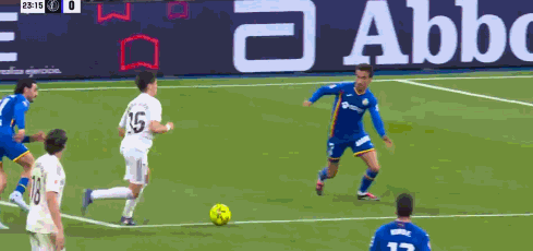 第39分钟,反客为主,萨特里亚诺凌空抽射破门,皇马0-1