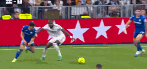 第42分钟,维尼修斯传中,楚阿梅尼头球攻门被扑住