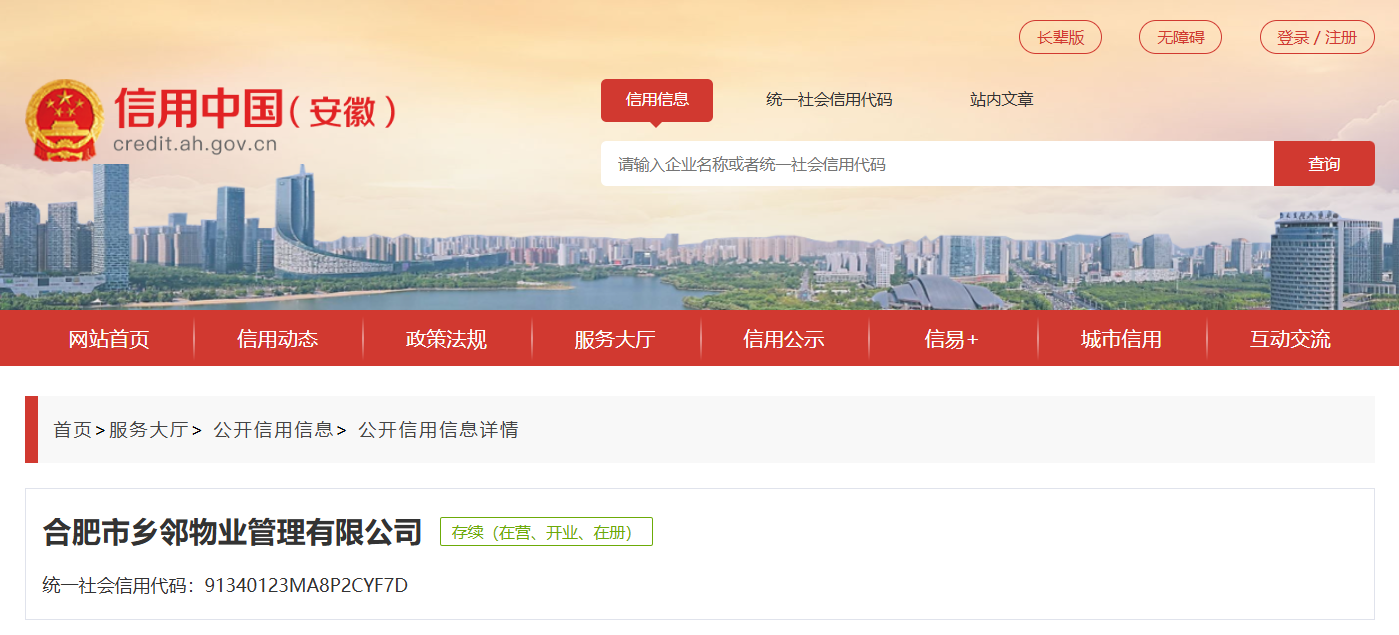 天眼查信息显示,合肥市乡邻物业管理有限公司,成立于2022年,肥西县乡村振兴投资集团成员,位于安徽省合肥市,是一家以从事房地产业为主的国有控股企业。