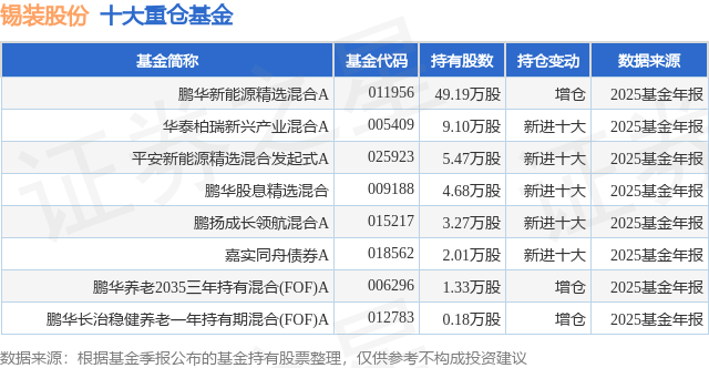 重仓锡装股份的公募基金请见下表: