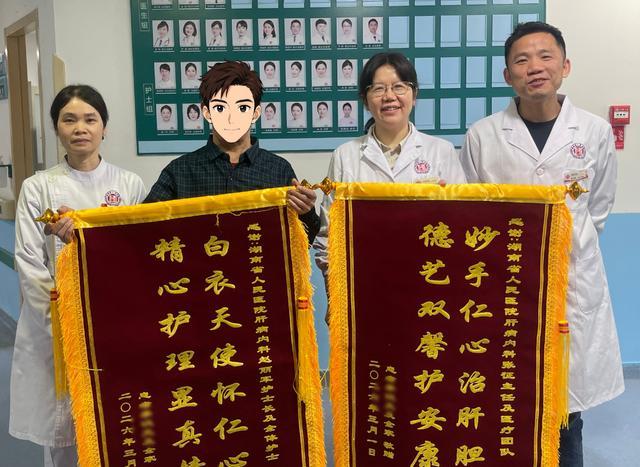 “我想了很多方式表达感谢,但每次他们都说不用,你自己留着买点营养品。”老李表示,自己能坚持这么长时间,全靠肝病内科医护人员的精准治疗和精心护理,这一次,不管医生们怎么拒绝,他还是坚持做了两面锦旗,手写了一封感谢信,送到了病房。