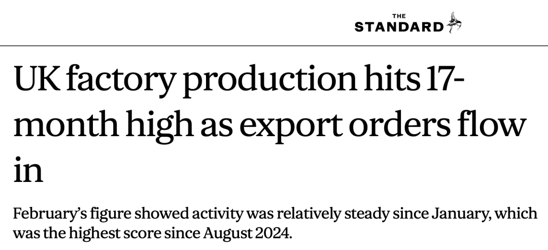 分析指出,英国制造业产出的本轮扩张已持续5个月,为自2024年9月以来最长连续增长周期。尽管企业面临成本压力上升,制造业的产出与新订单仍保持增长,整体运营环境持续改善。