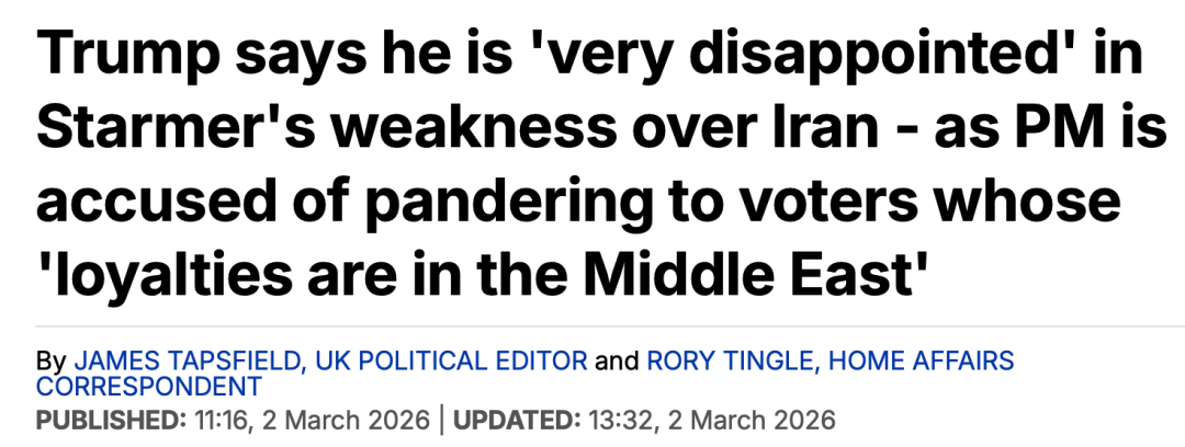● 斯塔默犹豫是否允许美军使用英国基地打击伊朗,特朗普批评:非常失望