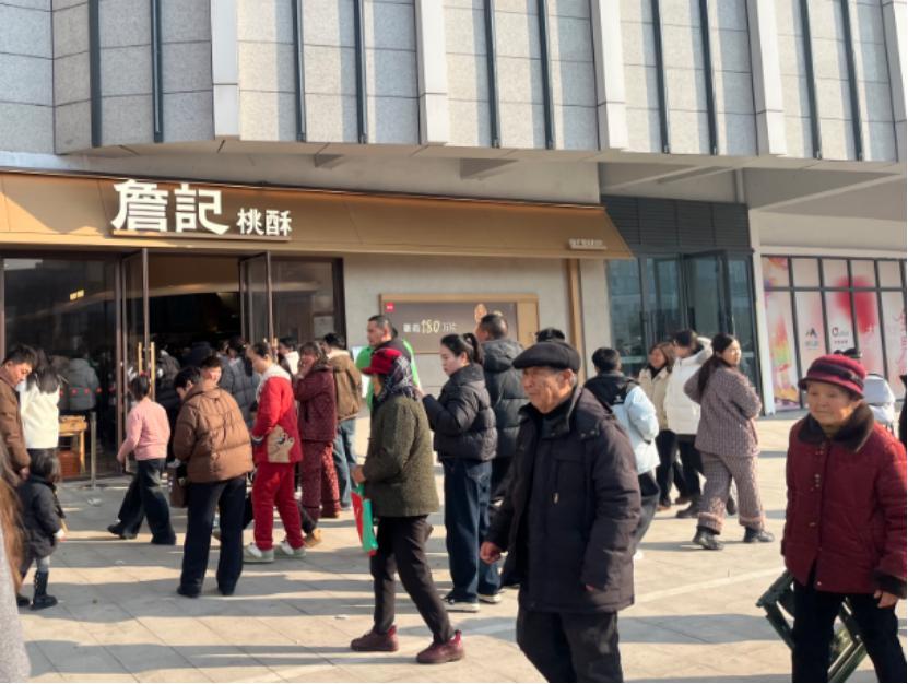 詹记桃酥在安徽市场拥有深厚的品牌认知与扎实的产品口碑,其在界首市的新店,春节期间几乎天天客流爆满。大年初一,恰逢“返乡人口与常住人口”双重客流叠加,门店前排起两三米长队,即便初四返乡潮开启,清晨七八点仍有年轻消费者提前到店等候。