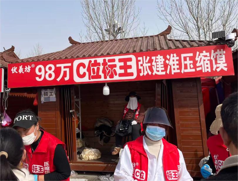 而在距离界首市一两小时车程的河南淮阳太昊陵景区前,一个二三十平方米的压缩馍摊位,竞拍费高达百万元。