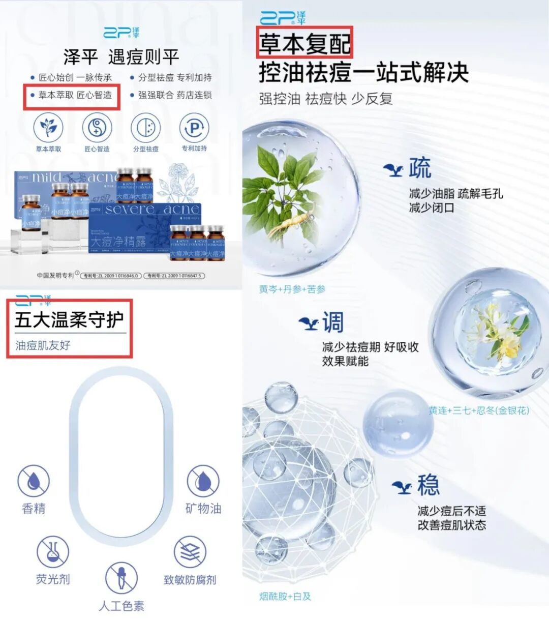 公开资料显示,泽平品牌始于1992年,定位为中医药疗肤类功效护肤品牌,专注祛痘、淡印、淡斑等问题肌修护,以中草药复配与三元渗透技术为核心,主打药房渠道,是国内早期药妆代表品牌之一。
