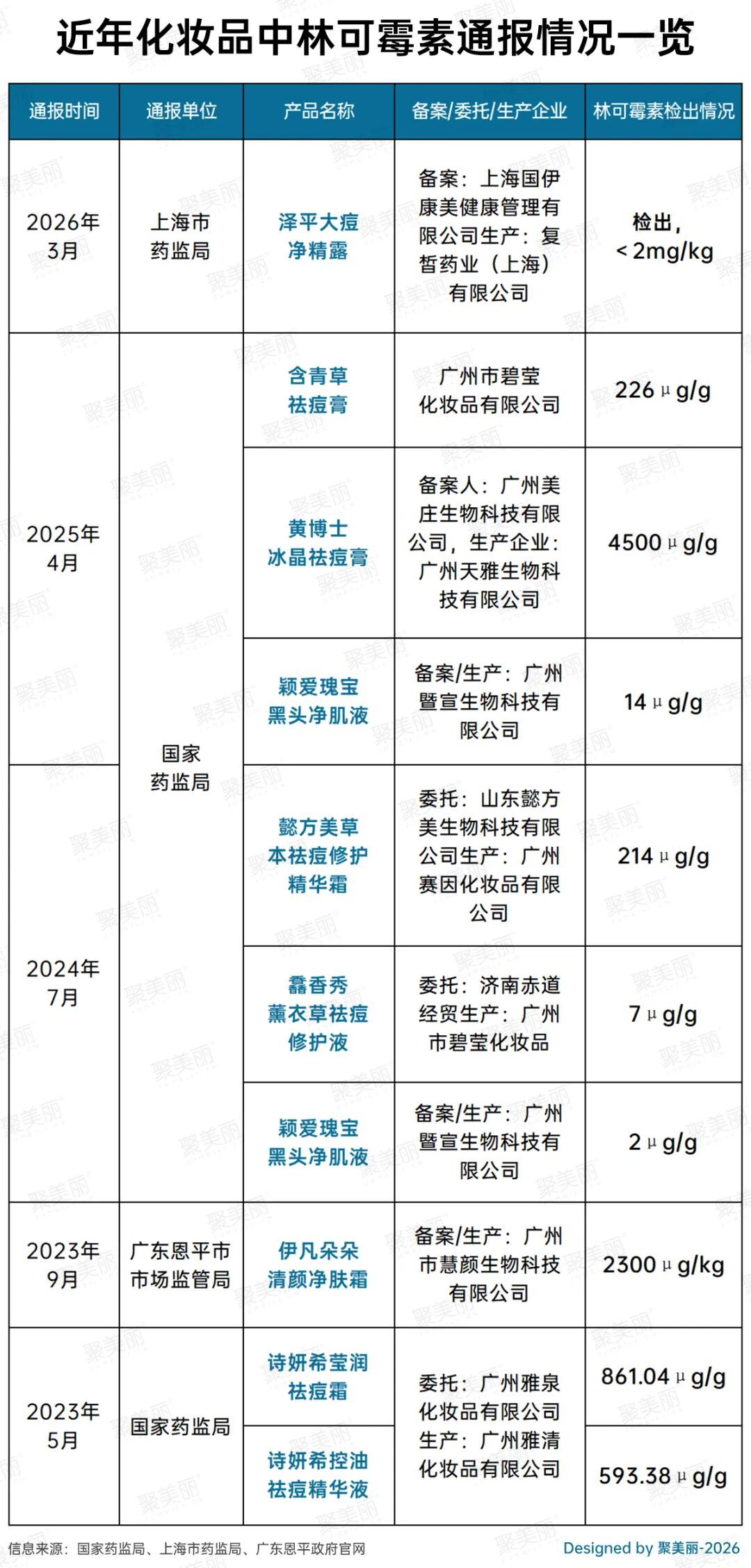 然而,不仅泽平,近年祛痘产品检出林可霉素这一抗生素的情况频发。