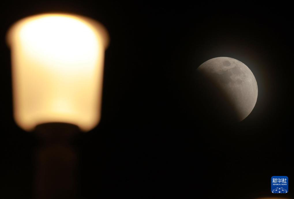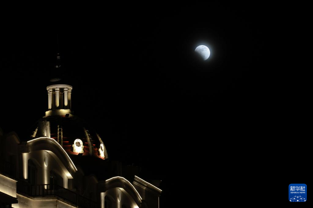 这是3月3日在北京永定门城楼附近拍摄的月全食。