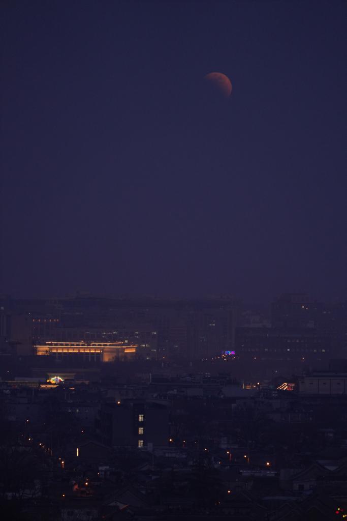 这是3月3日拍摄的北京景山万春亭和月全食。