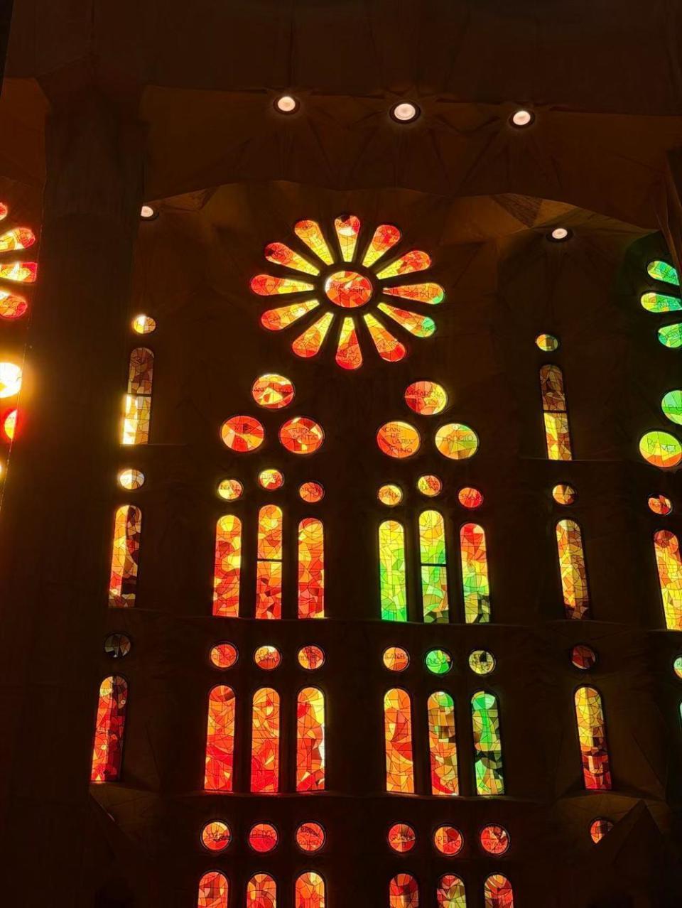 阳光通过彩绘玻璃花窗射入圣家堂内部