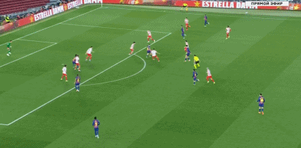 第14分钟,拉菲尼亚前场断球后低射,皮球偏出立柱