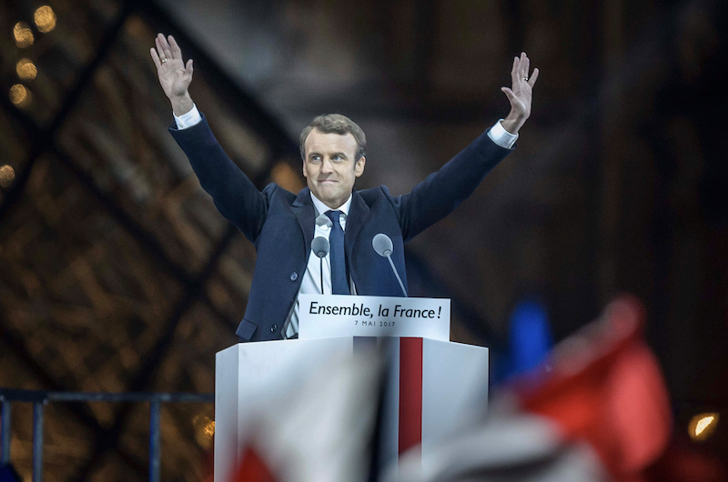 2017年,马克龙在卢浮宫前庆祝胜选