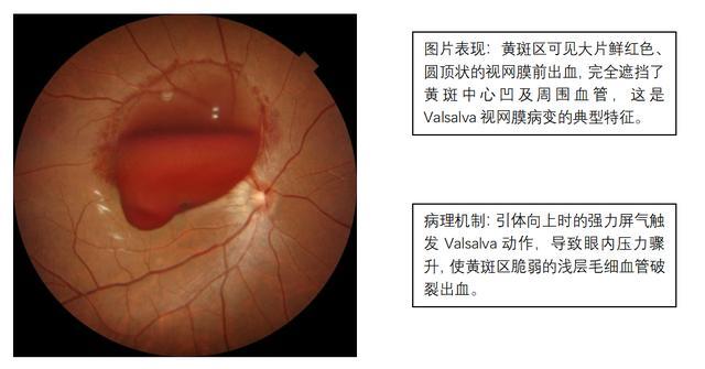 Valsalva视网膜病变的典型表现是单侧视力突发下降,通常在屏气动作后立即出现。患者可能会描述眼前有“黑影”“幕布”或“红色烟雾”遮挡,视力从轻度模糊到仅剩光感不等。值得注意的是,这类患者往往没有眼痛、头痛等伴随症状,容易被误认为是“用眼疲劳”而延误就诊。
