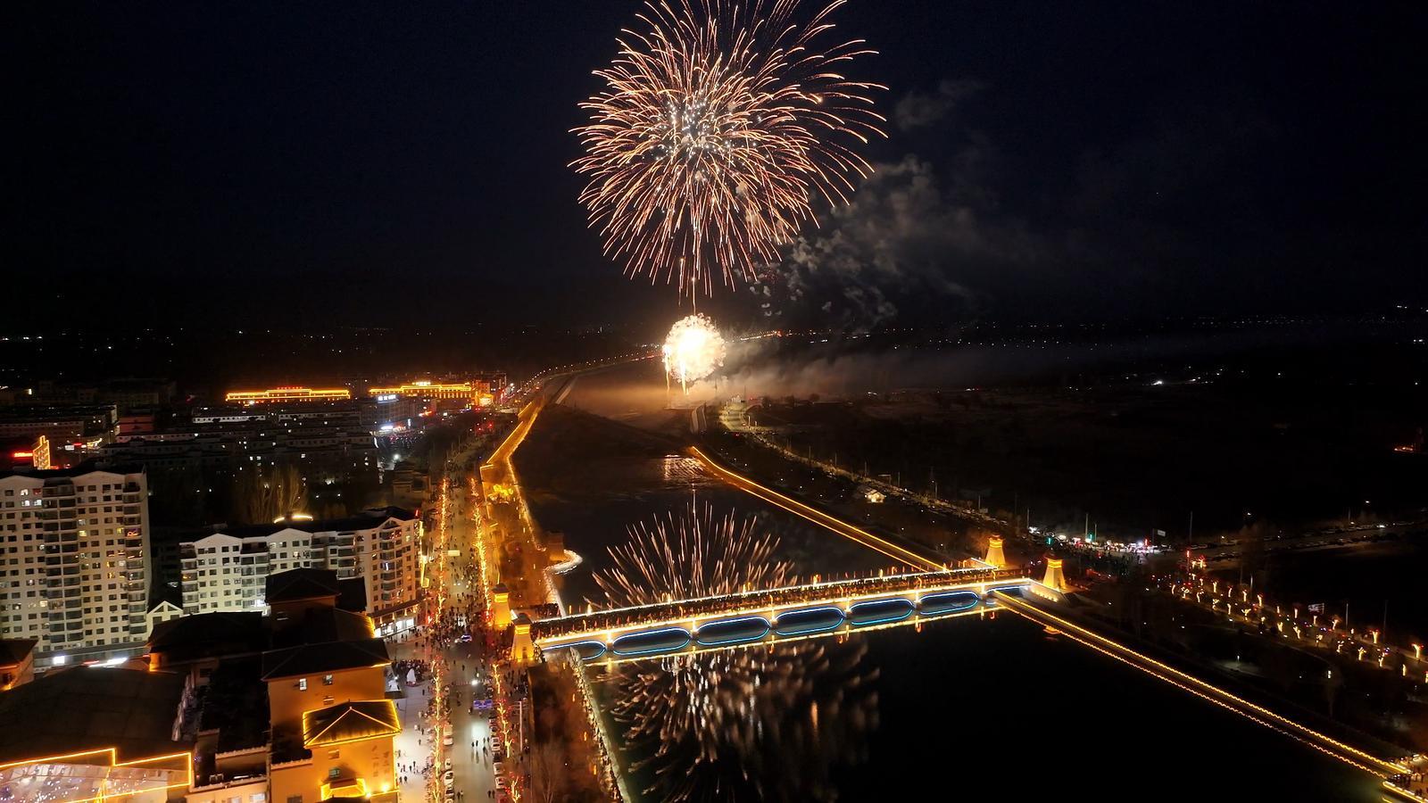 3月3日农历正月十五晚,敦煌市白马塔大桥南侧河道华光绽放、欢声如潮,“骐骥燃灯・盛世敦煌”2026年元宵节焰火晚会如期举行,将马年春节的喜庆氛围推向最高潮,为市民与游客献上一场融合丝路文脉与时代气象的视听盛宴。