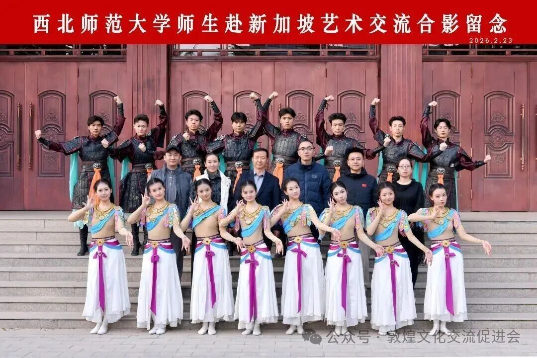 近日,受新加坡文化机构邀请,敦煌学院舞蹈老师苏瑞璇带领20名师生组成的“敦煌舞蹈艺术团”远赴狮城,参加“2026年新加坡善济-敦煌新春晚会”系列活动,用千年敦煌文化为当地增添了浓郁的中国年味。