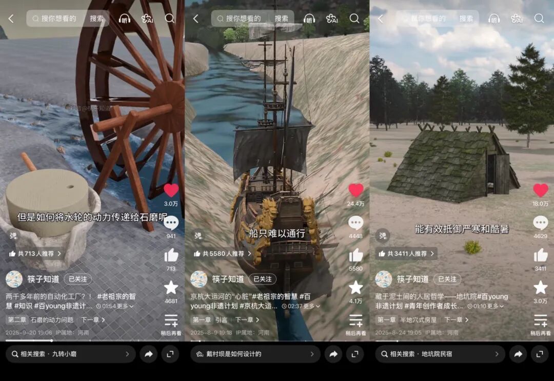 此外,京杭大运河的运转逻辑、汝瓷的烧制过程等等都被他用AI完美演示出来,不仅还原了古人的智慧,更让沉睡在古籍中的文字“活”了起来。