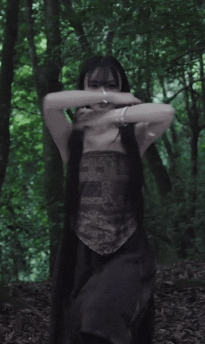 在云南深山的瀑布下,@江寻千(九月)身着民族服饰,一招一式还原出地道的神鸟舞。