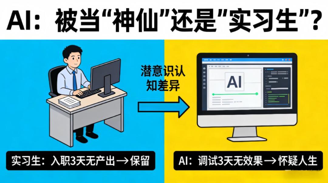 这反映出一个普遍心理——我们潜意识里把AI当成了“神仙”,而不是“实习生”。如果一个实习生入职三天没产出,你不会开除他;但AI调试三天没效果,你就开始怀疑人生。