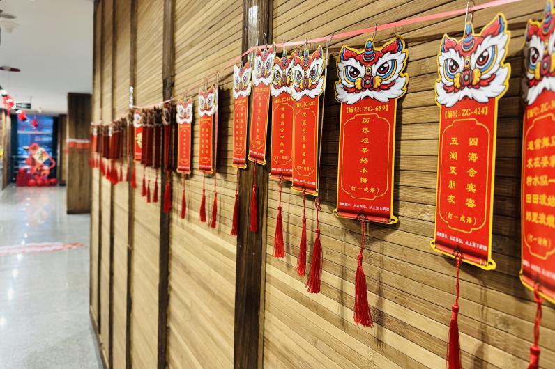 从掼蛋到灯谜,处处是熟悉的乡音。下午14时起,会客厅便陆续迎来归家的游子。掼蛋区里,老乡们以牌会友,谈笑声此起彼伏;红灯笼下悬挂的灯谜纸条随风轻摇,不少人已开始跃跃欲试。这里没有陌生的面孔,只有熟悉的乡音;没有客套的寒暄,只有回家的自在。