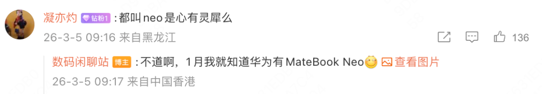 有网友调侃称,苹果与华为似乎在产品命名上出现了“心有灵犀”的情况。对此,爆料博主回应表示,其早在今年1月便已获悉华为内部规划有MateBook Neo这一产品,因此两者并不存在刻意跟风的情况,更可能只是命名上的巧合。