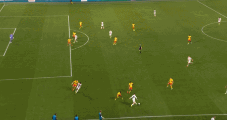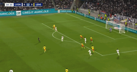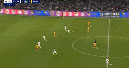 第45+1分钟,托万直塞,西马禁区右路起脚射门扩大比分,朗斯2-0里昂