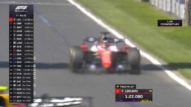 一练停表,勒克莱尔全场最快,汉密尔顿第二,维斯塔潘第三。