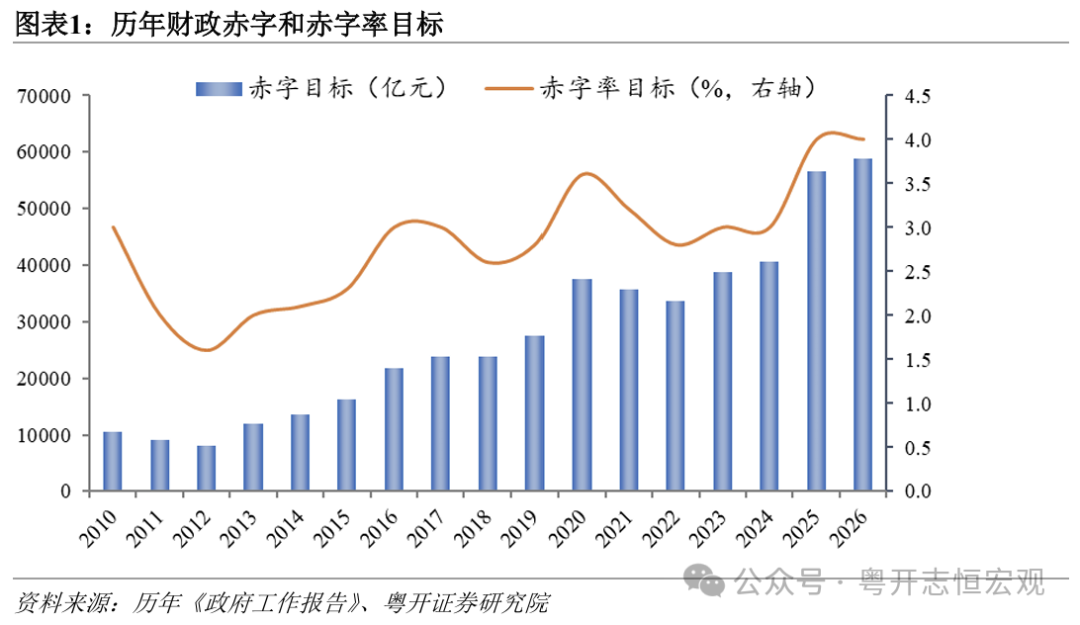 一、财政政策力度有保障:赤字率保持在4%的高位,赤字规模、当年新增债务规模和支出规模均创新高