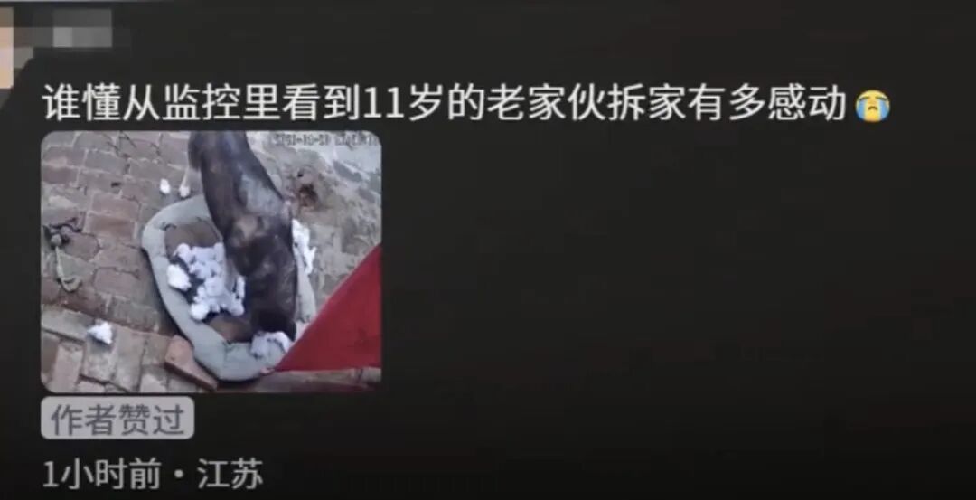“谁懂从监控里看到11岁的老家伙拆家有多感动。”