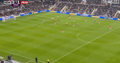 在英超第29轮纽卡斯尔联vs曼联的比赛中,上半场双方战成1-1平。下半场临近伤停补时,纽卡前锋奥苏拉在本方后场断球,回敲给特里皮尔后,果断前插。奥苏拉后沿右路长途奔袭,内切连续晃过两名曼联球员后找到角度,兜射远角破门,让拉门斯无可奈何。