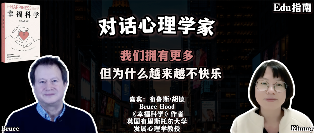 最近Edu指南和《幸福科学》作者、英国布里斯托尔大学发展心理学教授布鲁斯·胡德(Bruce Hood)就上述话题进行了一次对话。胡德教授与我们分享了更多关于欲望审视、比较与享乐适应的心理机制,同时在富足时代里,那些真正能带来长期幸福的因素。