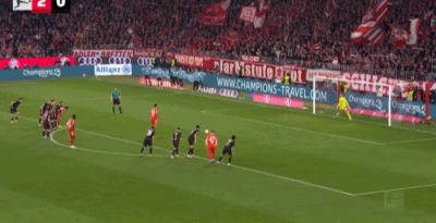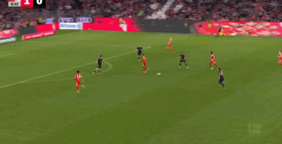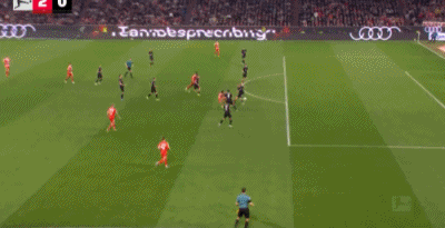 第32分钟,格雷茨卡挑传,迪亚斯凌空抽射破门,拜仁1-0门兴