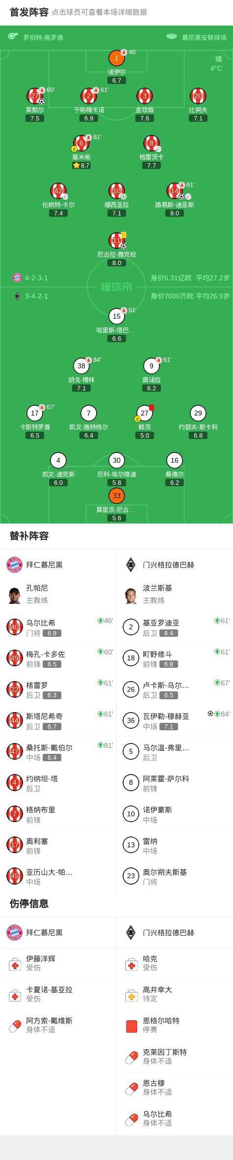 第79分钟,雅克松门前推射空门破门,拜仁4-0门兴