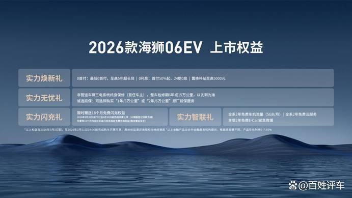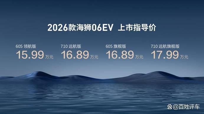 从全新闪充和第二代刀片电池为主的颠覆性技术赋能,到智能、舒享、颜值、驾控、安全的五大维度升级,2026款海狮06EV此次焕新,无疑是一次全方位、高标准的自我超越。它不仅体现了比亚迪在新能源技术领域的硕果,更精准满足了当下消费者的高品质出行需求。2026款海狮06EV将继续引领市场风潮,陪伴更多家庭用户开启更加美好的绿色出行新篇章。目前新车已抵达比亚迪海洋网各大门店,欢迎用户到店品鉴试驾。