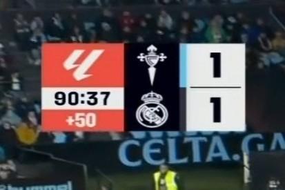 北京时间3月7日,西甲联赛第27轮,塞尔塔在主场1-2不敌皇家马德里。在本场比赛的电视转播过程中,发生了一起小意外。比赛常规时间结束时,西甲官方导播在记分牌上给了50分钟的伤停补时时间。