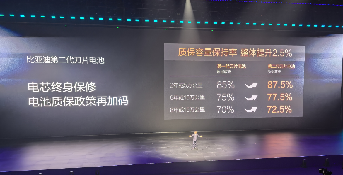 安全方面,第二代刀片电池历经一系列超越国家最严苛标准的安全测试,确保电池在全生命周期内的绝对安全,还能持续为用户构建最值得信赖的安全防线。