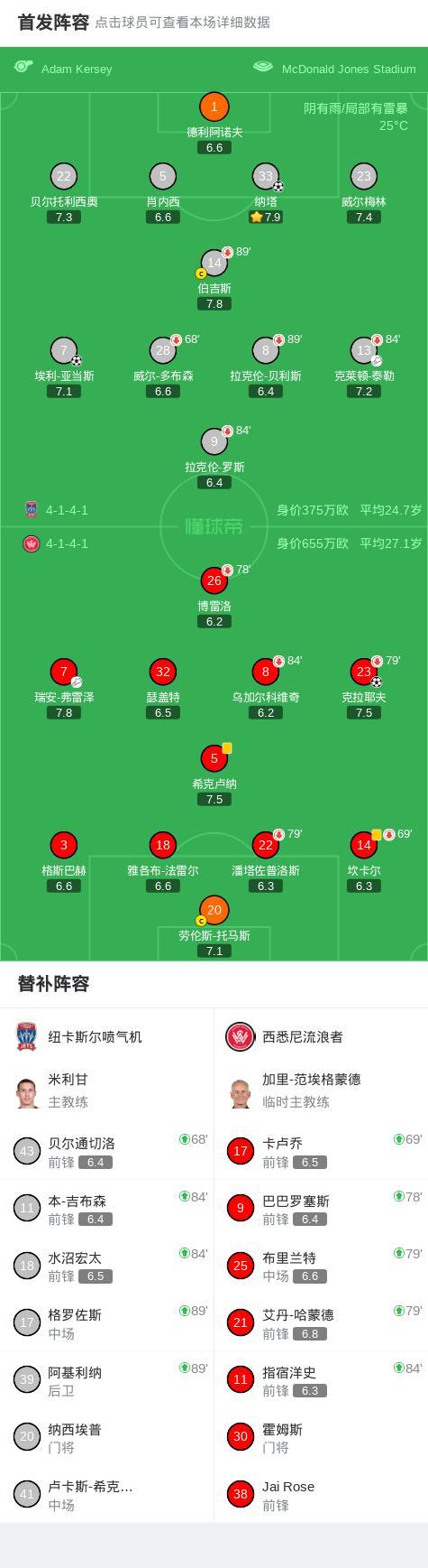 第77分钟,纳塔门前乱战破门,纽卡斯尔喷气机2-1西悉尼流浪者