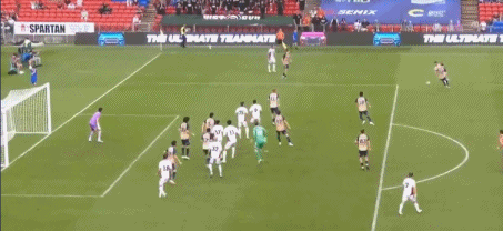 第90+5分钟,门将托马斯头球攻门,球击中门框险绝平