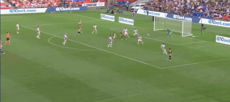 第58分钟,纽卡斯尔喷气机球员禁区前射门,球擦着立柱出了底线