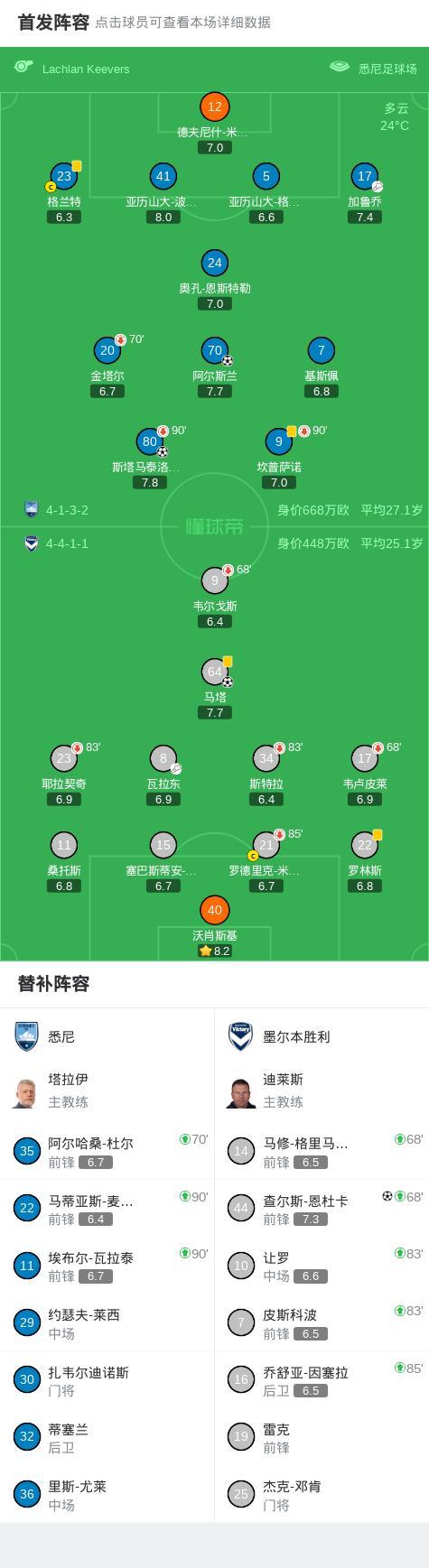 第73分钟,扳回一城,斯塔马泰洛普洛斯头球得分,悉尼1-2