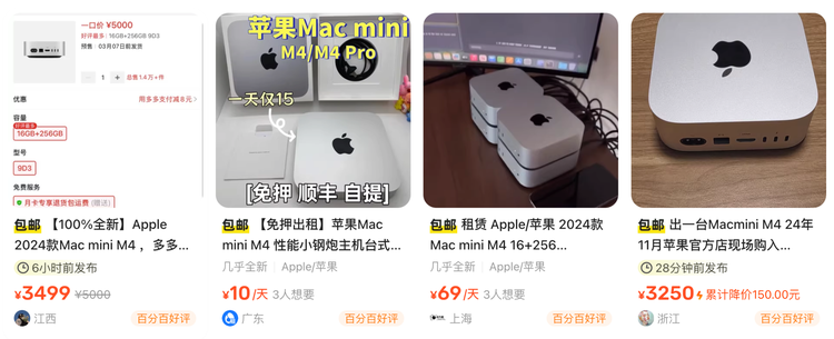 OpenClaw还带火了一个意想不到的硬件产品。本地部署最推荐的设备是Mac mini,于是闲鱼上二手Mac mini的价格也跟着涨了,有数据显示Mac mini今年1月销量暴增65%。有人感慨,这跟前两年抢Switch健身环的场景如出一辙,买的时候觉得自己明天就能练出马甲线,到手之后最大的运动量是把它从快递箱里拿出来。