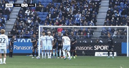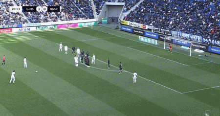 第21分钟,马特乌斯-热苏斯任意球直接破门扳平比分,长崎航海1-1大阪钢巴