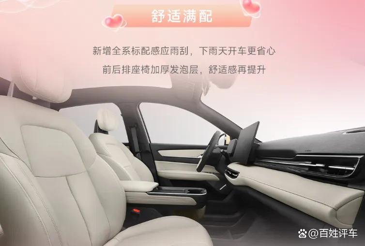 舒适满配,让家人惬意,也让她放松。全家出行,既怕孩子闹,又怕老人累。新车后排座椅增加15mm软泡层,柔软贴合、支撑扎实,宝贝睡得香,老人坐得舒服。前排座椅加热+主驾通风,一年四季都舒适。品牌同级首发AI大模型,依托Deepseek,更听得懂她的话,让她有求必有应。雨雪天气出行不便,感应雨刮自动开启,从容又安全。360°全景影像,窄路会车不紧张,新手也更能一把入库。外后视镜能折叠能加热,洗完车不用探出身去掰。抱着娃腾不出手?有NFC/蓝牙钥匙呢,手机贴一下,车门开了。