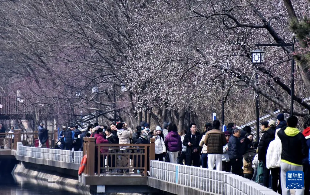 随着气温逐渐回升,北京市朝阳区二道沟河六里屯段的“山桃花溪”近百株山桃花已陆续绽放,吸引不少市民游客前来踏青赏花。