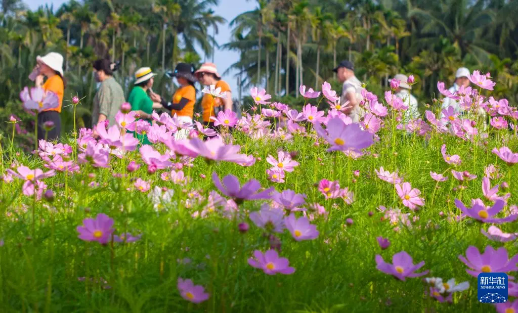 3月7日,游人在海南省琼海市博鳌镇南强村花海赏花游乐。