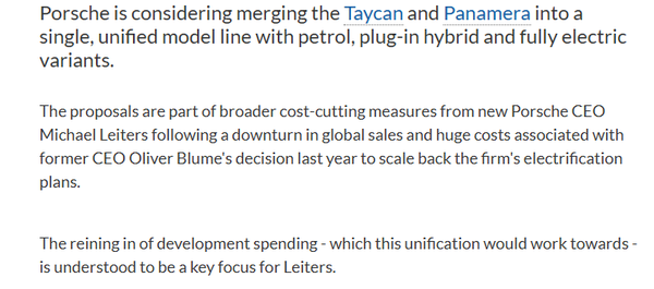 【CNMO科技消息】3月9日,据外媒报道,保时捷正酝酿一项重大战略调整:计划将旗下Taycan与Panamera两款车型合并,打造一个提供燃油、插电混动及纯电多种动力形式的单一车型系列。